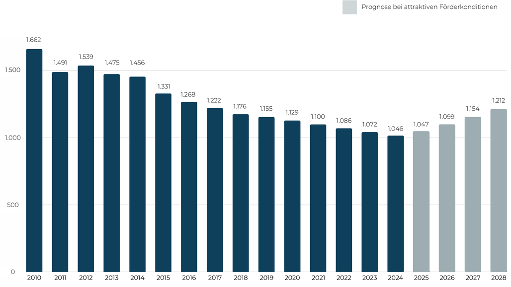 Der Bestand an geförderten Wohnungen ist in den letzten Jahren massiv zurückgegangen. Auslaufenden Förderverträgen steht ein geringes Angebot neuer geförderter Wohnungen entgegen. Durch attraktive Förderkonditionen kann diesem Trend in Zukunft nachhaltig entgegengewirkt werden.
